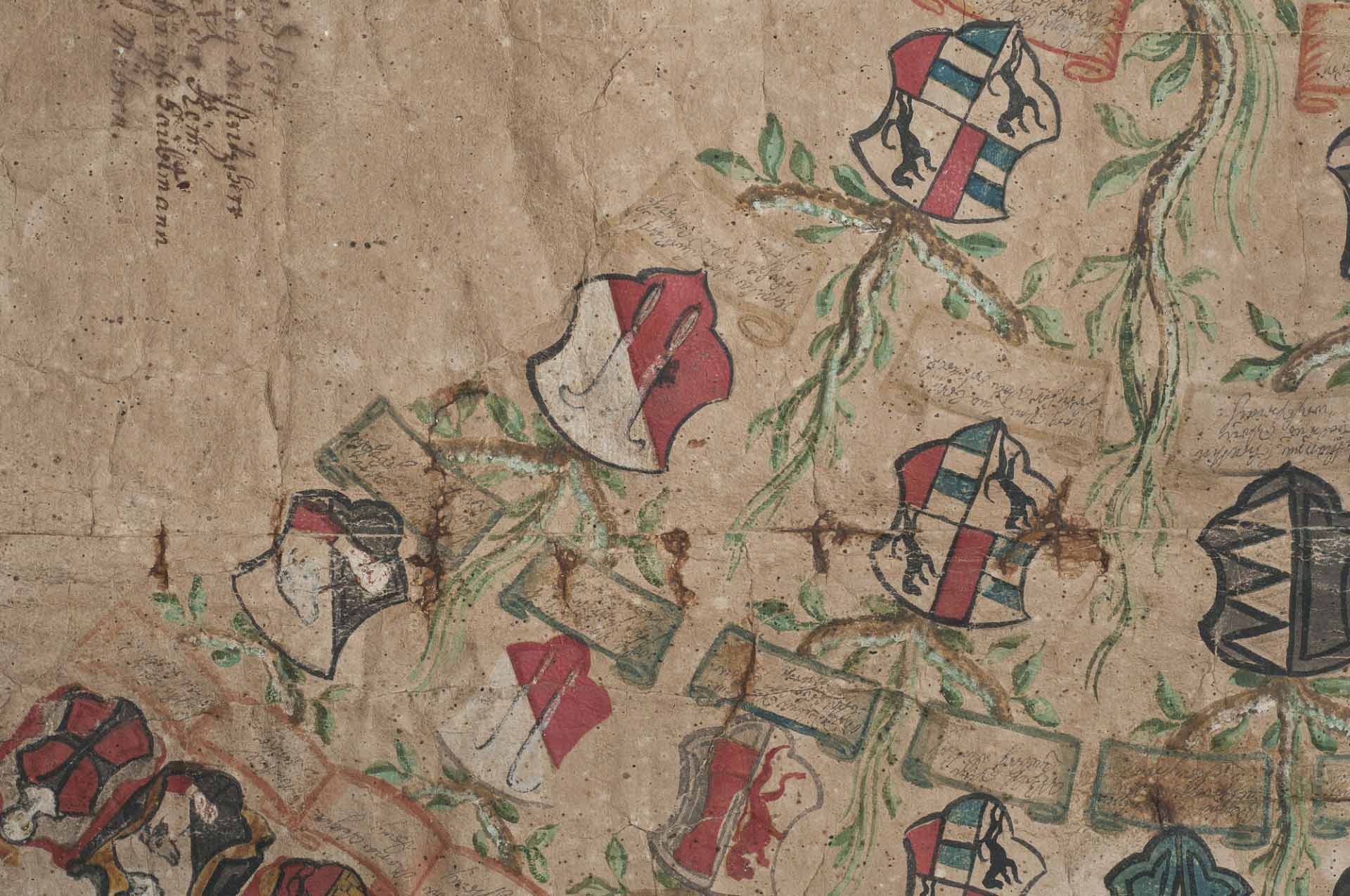 Na podzim nás oslovil pan kastelán ze zámku v Kuníne s požadavkem na výrobu faksimile rodokmenu rodiny Vetterů z Lilie. Rodokmen posloužil jako dar k životnímu jubileu hraběte Karla Vettera z Lilie od paní hraběnky. Rod Vetterů z Lilie žil na zámku v Nové Horce, odkud pochází i originál rodokmenu z počátku 18. století. Nyní je originál uložen na zámku ve Vizovicích, kde jsme ho digitalizovali.