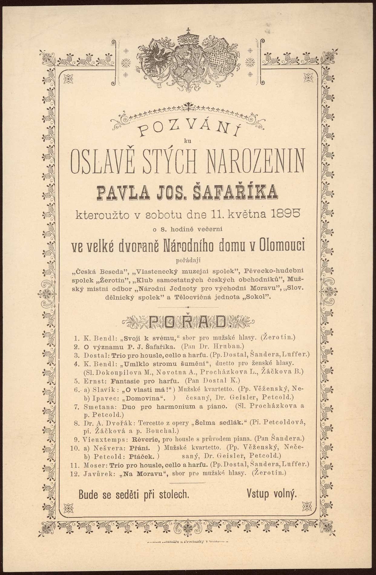 Ve velké dvořane Národního domu v Olomouci, 11. května 1895