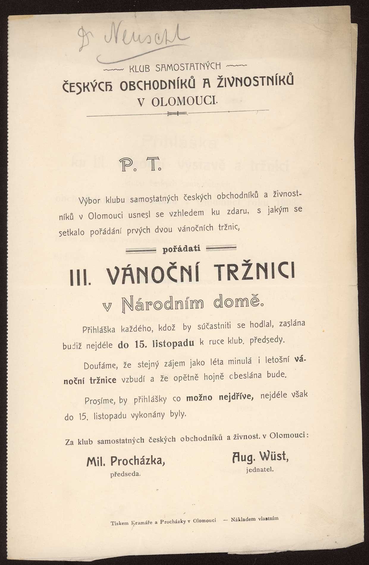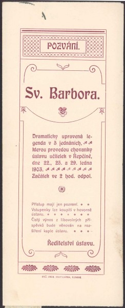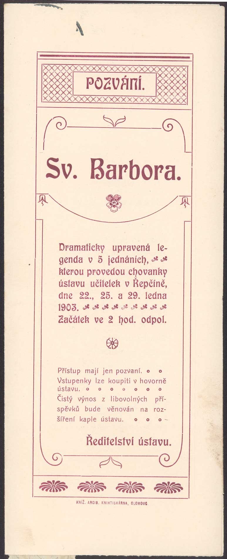 Dobročinný komitét dam v Olomouci za lask. spoluúčasti domácího orchestru "Žerotína" ve prospěch chudých dítek českých škol. Rok 1904.